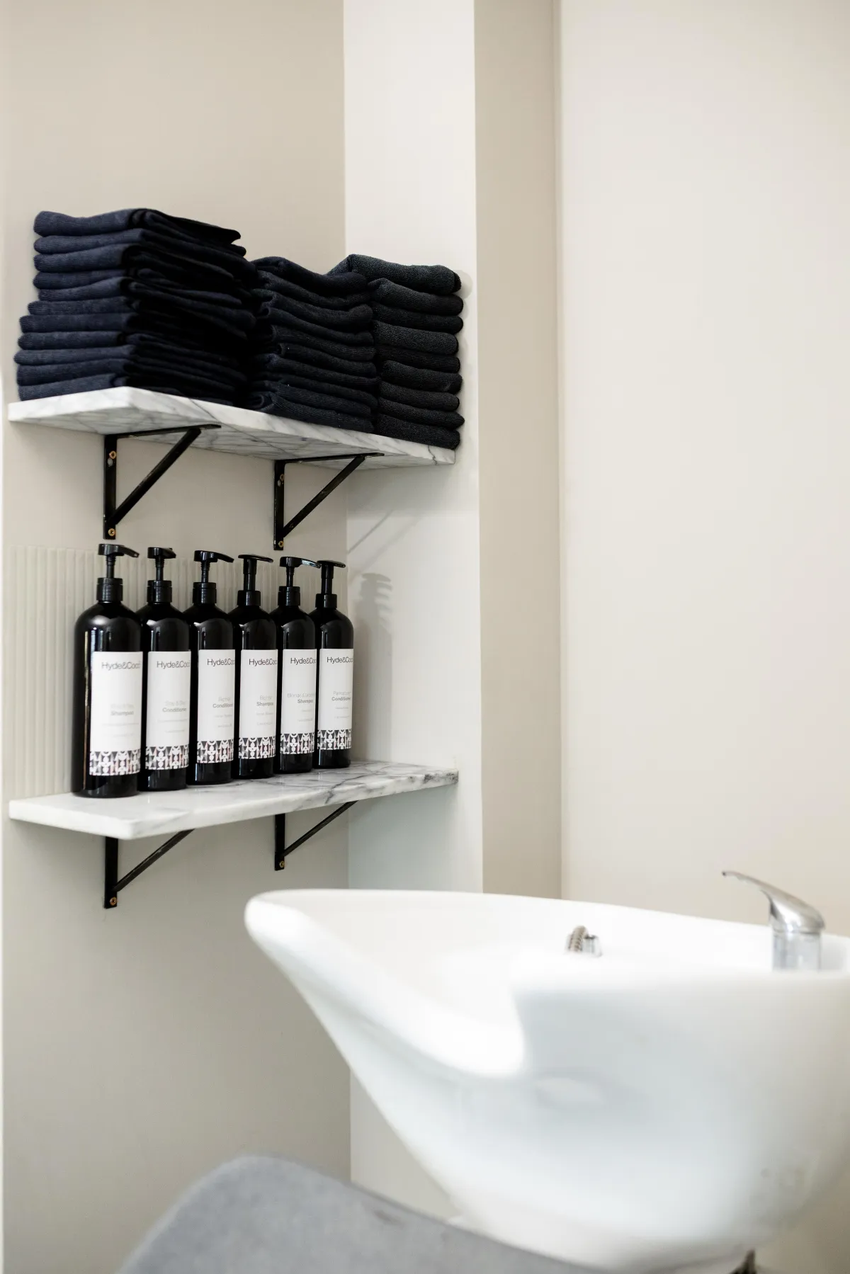 We use Evergreen, Nine Yards and Innoluxe, alongside our own haircare range, Hyde & Coco; diverse, ethical and sustainable.